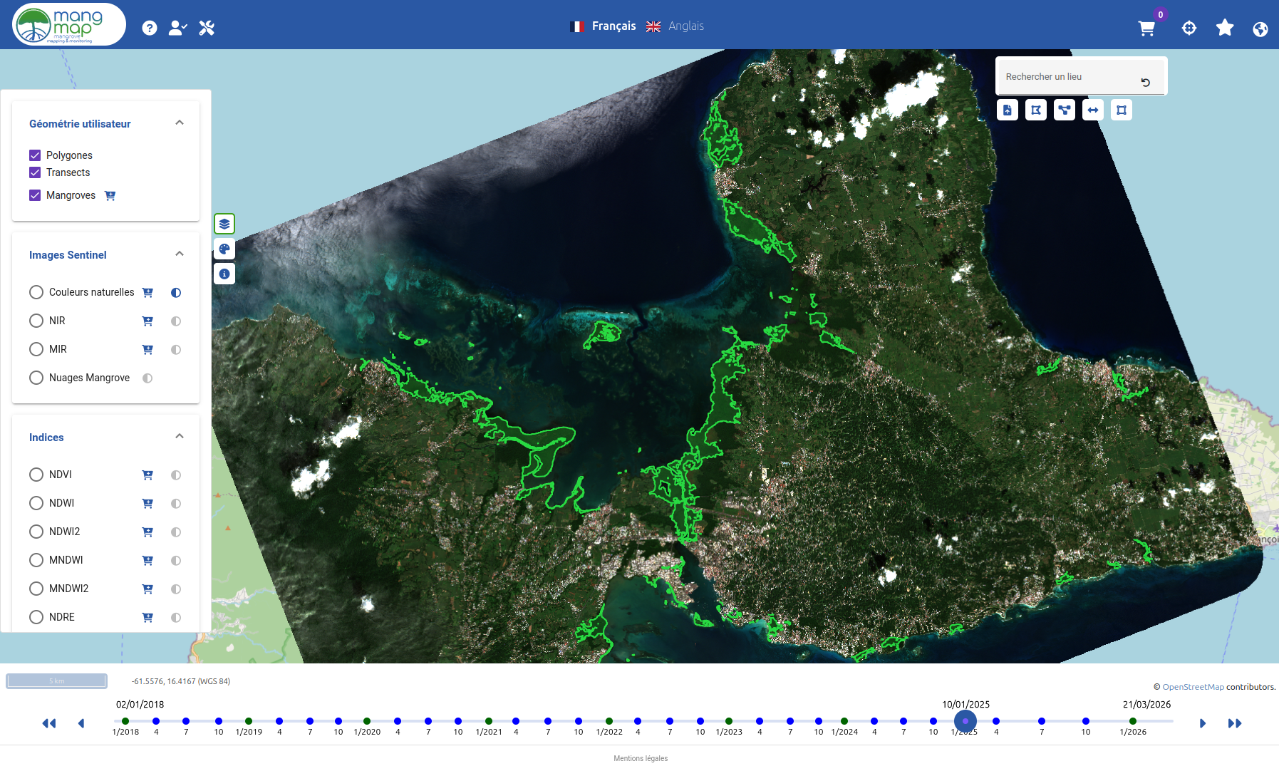 Les synthèses temporelles couvrant les mangroves de l'archipel sont désormais accessibles à la communauté scientifique et aux gestionnaires de ces écosystèmes.